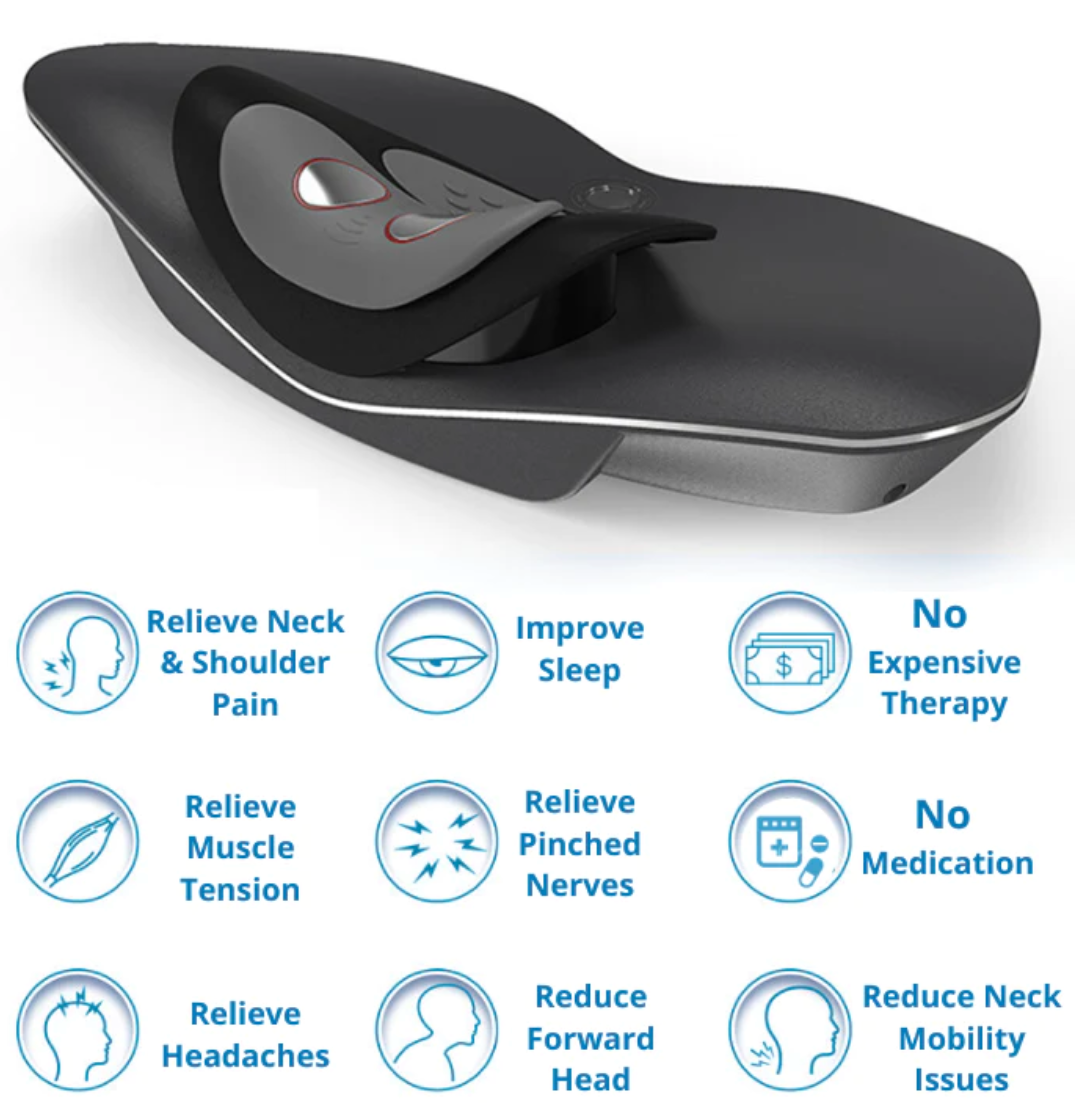 This device lifts all the pressure from your spinal nerves, unlocks & hydrates the discs in your neck, corrects your posture and provides a deep massage to your neck muscles.